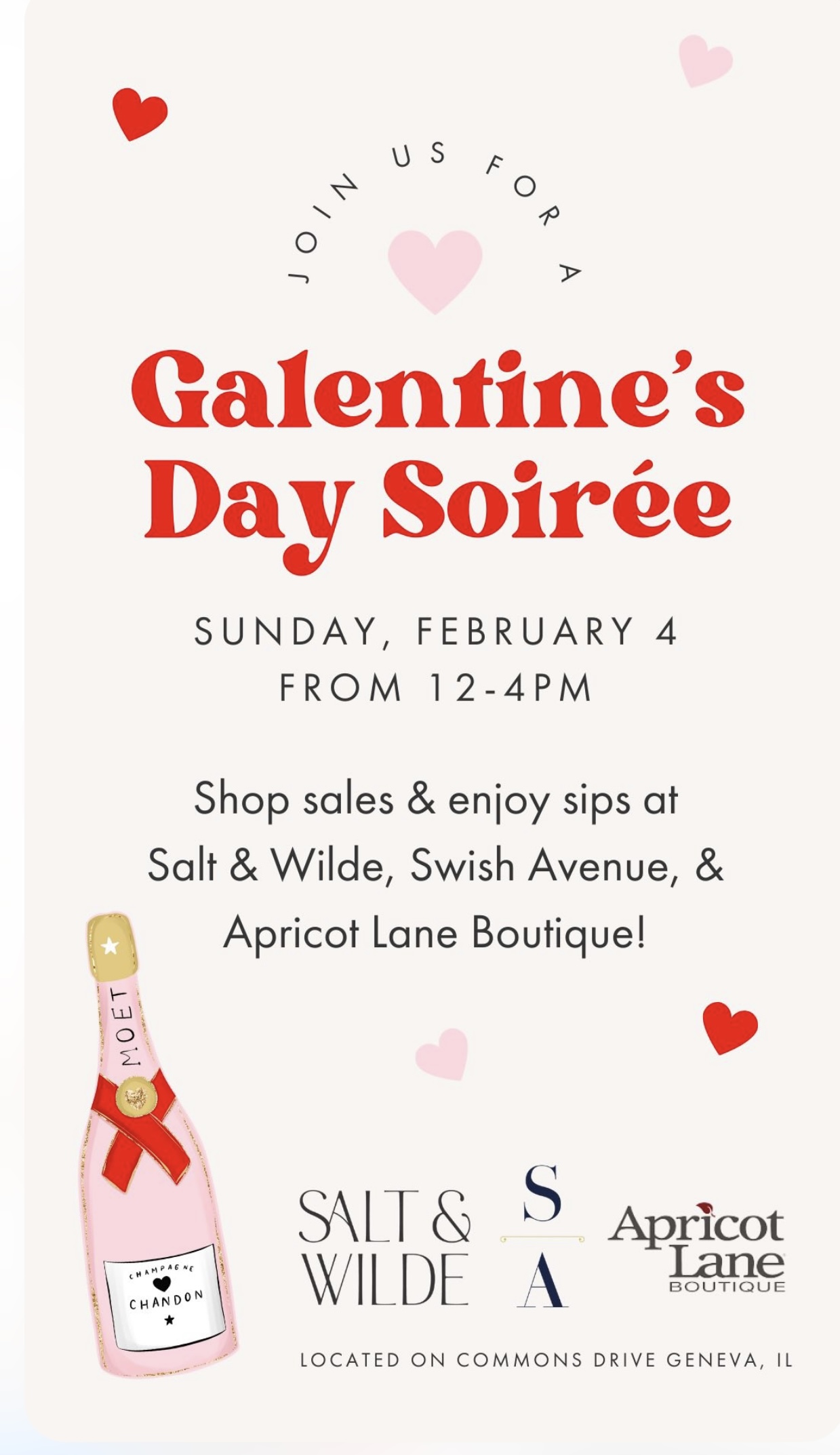 Ladies, this is for you! Enjoy Sales & Sips at our Galentine's Day Soiree! Bring your friends.