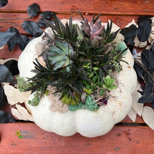 Create a darling succulent masterpiece for the fall holidays. This one of a kind centerpiece will last you through the Thanksgiving season and will make a prized table decoration during your holiday entertaining. Using a Cinderella pumpkin, we will add 5 succulents and decorative moss to create your unique centerpiece. More details BELOW
