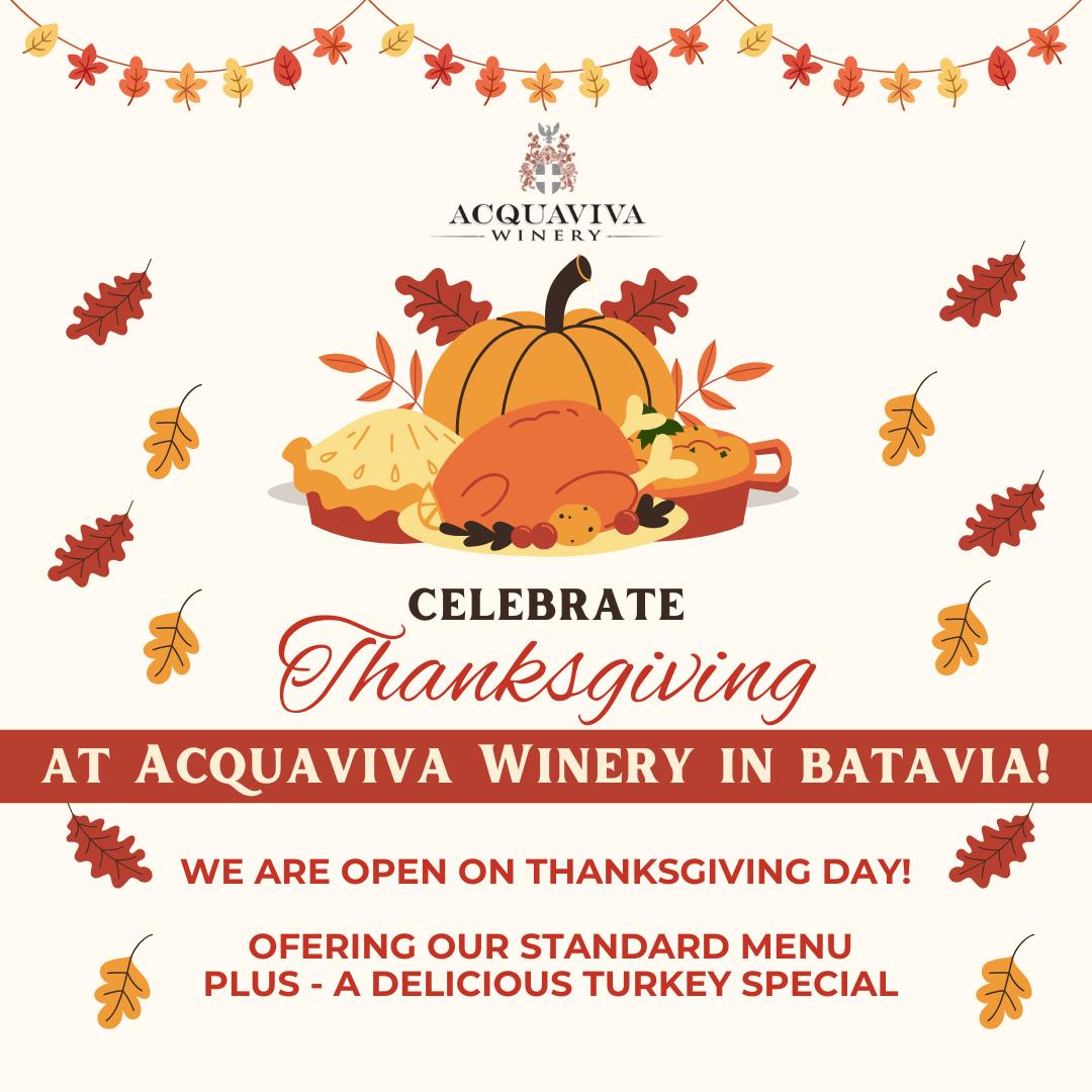 Join us to celebrate! We will be open on Thanksgiving Day, offering our regular menu plus a delicious Thanksgiving turkey special.