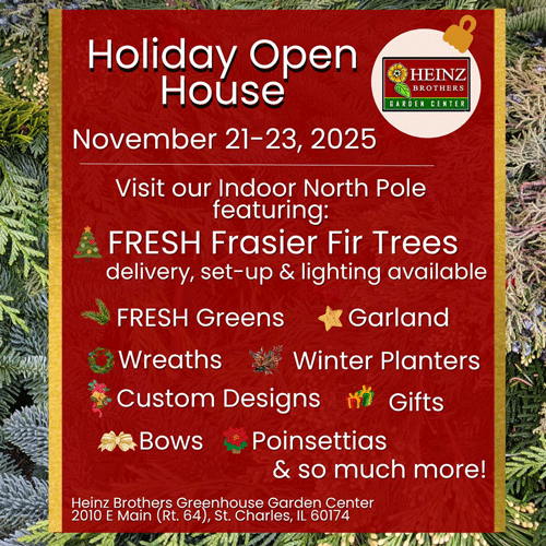 Let Heinz Brothers help you deck the halls and give thoughtful gifts this year with a visit to our Indoor North Pole. We are beginning to bring in the beauty and bounty of the season: home decor, lighting, gifts and life-like garland and trees are available now, while fresh cut greenery and trees are soon to follow! Join us for our Holiday Open House, November 21-23 when it will ALL be here and on display inside the back greenhouse. Bring the family to enjoy the sights, sounds and smells of the season at Heinz! More details BELOW