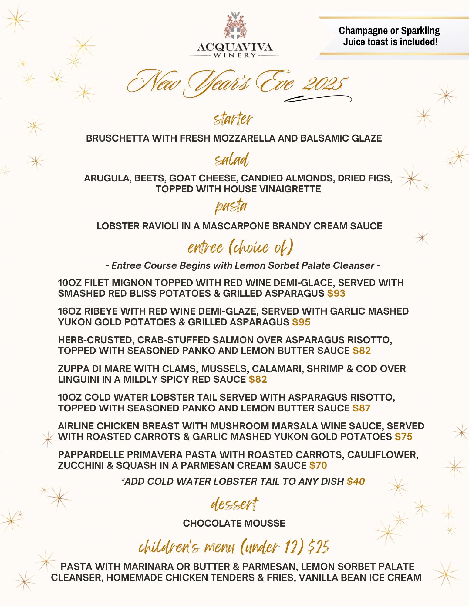 Join us to celebrate the New Year with a special evening in Maple Park! We've prepared a fabulous Prix Fixe menu (with entree options) and a delicious children's menu for your littles! More details BELOW