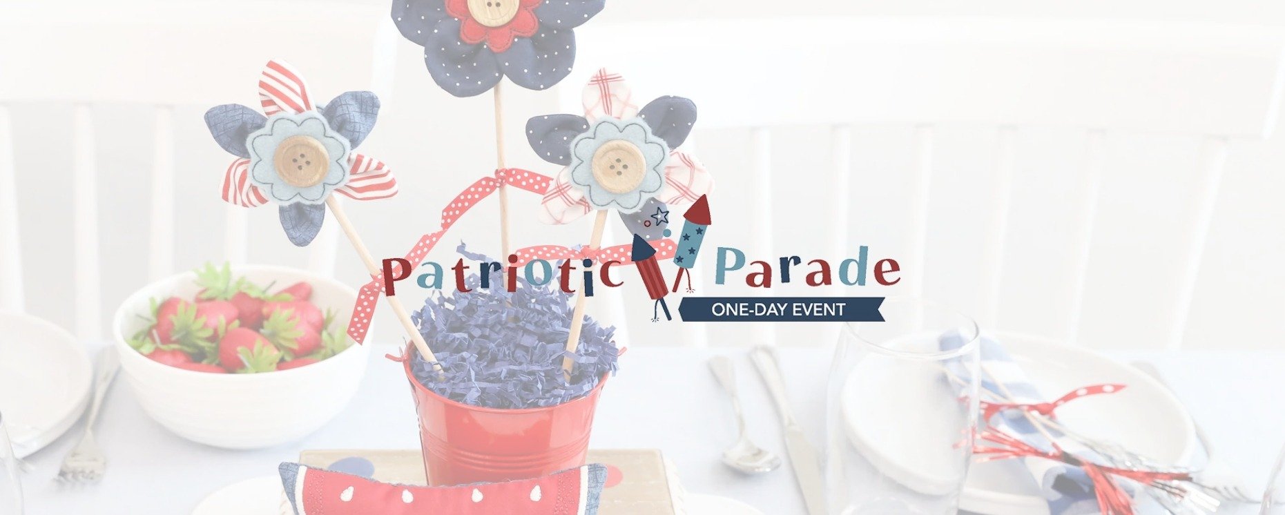 Make a festive table display with five darling designs! Stitch the Redwork Table Round, then place it beneath the included table riser and red pail. The Patriotic Posy and two Starry Blossoms are a fantastic floral centerpiece and the Summer Slice Stuffie is the perfect finishing touch! More details BELOW