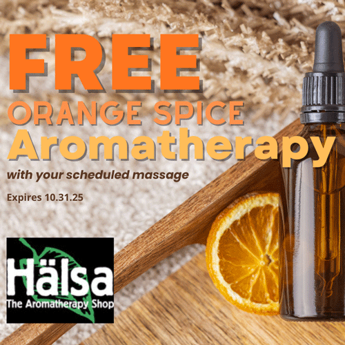 In October, enjoy a FREE Orange Spice Aromatherapy with your massage!